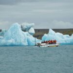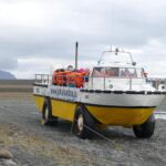 Auf dem Jökulsarlon wollen wir mit dem Amphibien Boot durch das Gletschereis in der Lagune fahren. Noch vor 100 Jahren reichte die Gletscherzunge bis zum Meer. Durch „Global Warming“ und der Mischung aus Süß- und Salzwasser ist der Gletscher inzwischen 8 Km zurückgegangen. Schon vom Ufer sehen wir wieder die türkisfarbenen Abbruchstücke des Gletschers.