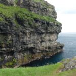 Gjogv, benannt nach einer Felsspalte und einem natürlichen Hafen, der bereits zur Wikingerzeit benutzt wurde. An den Steilhängen nisten eine Menge verschiedener Vogelarten. Auffällig natürlich die Puffins.