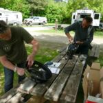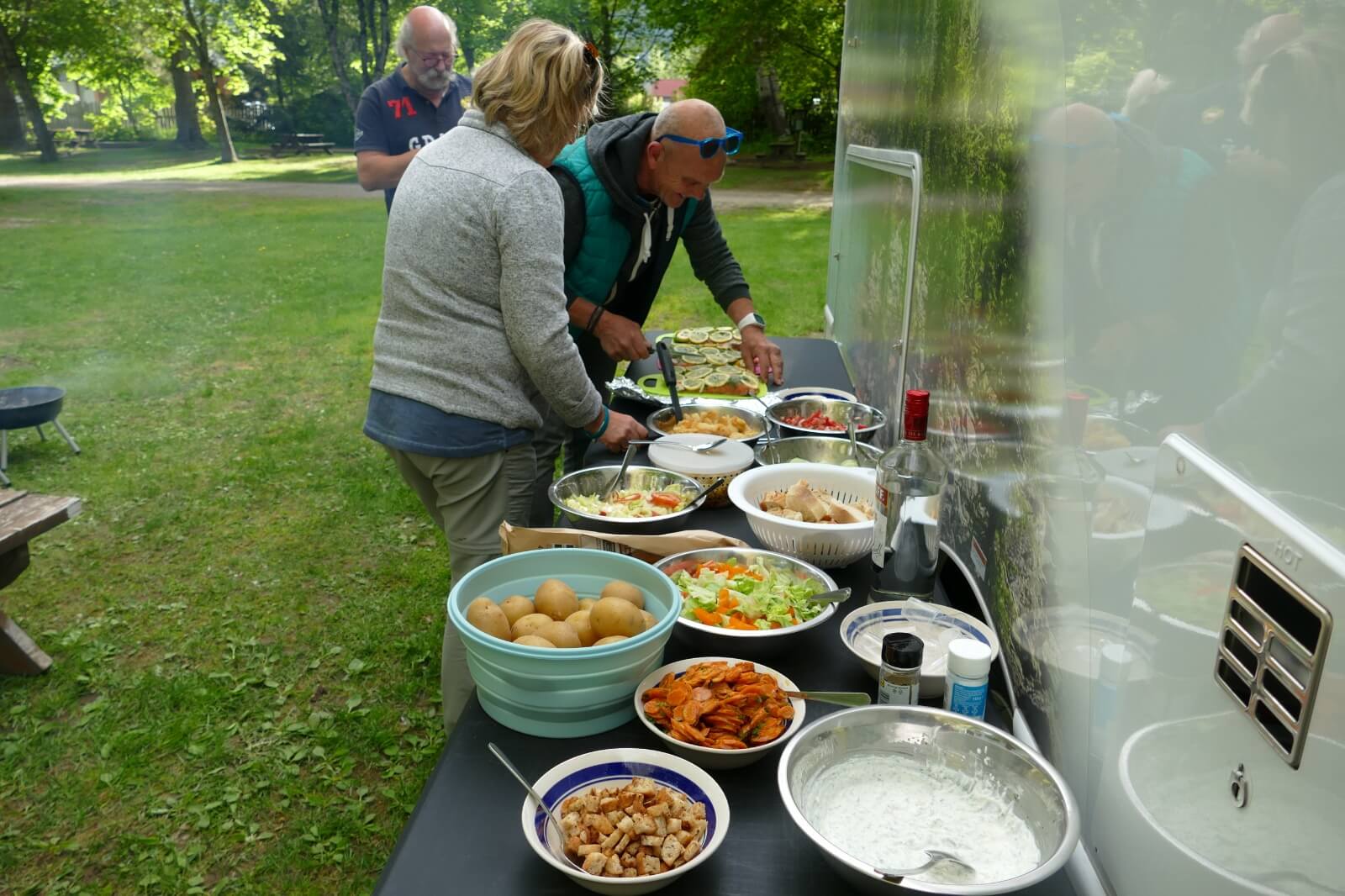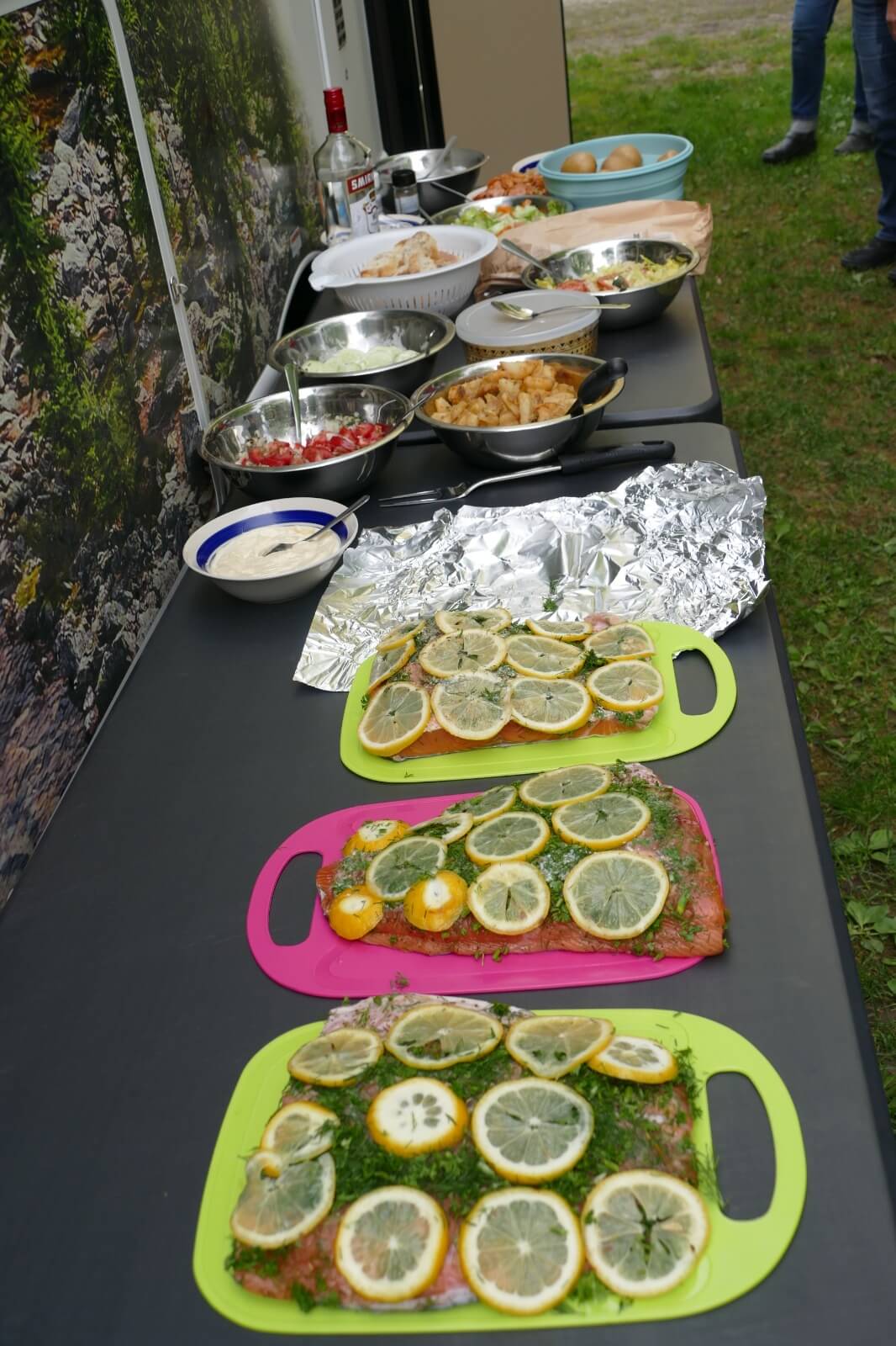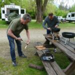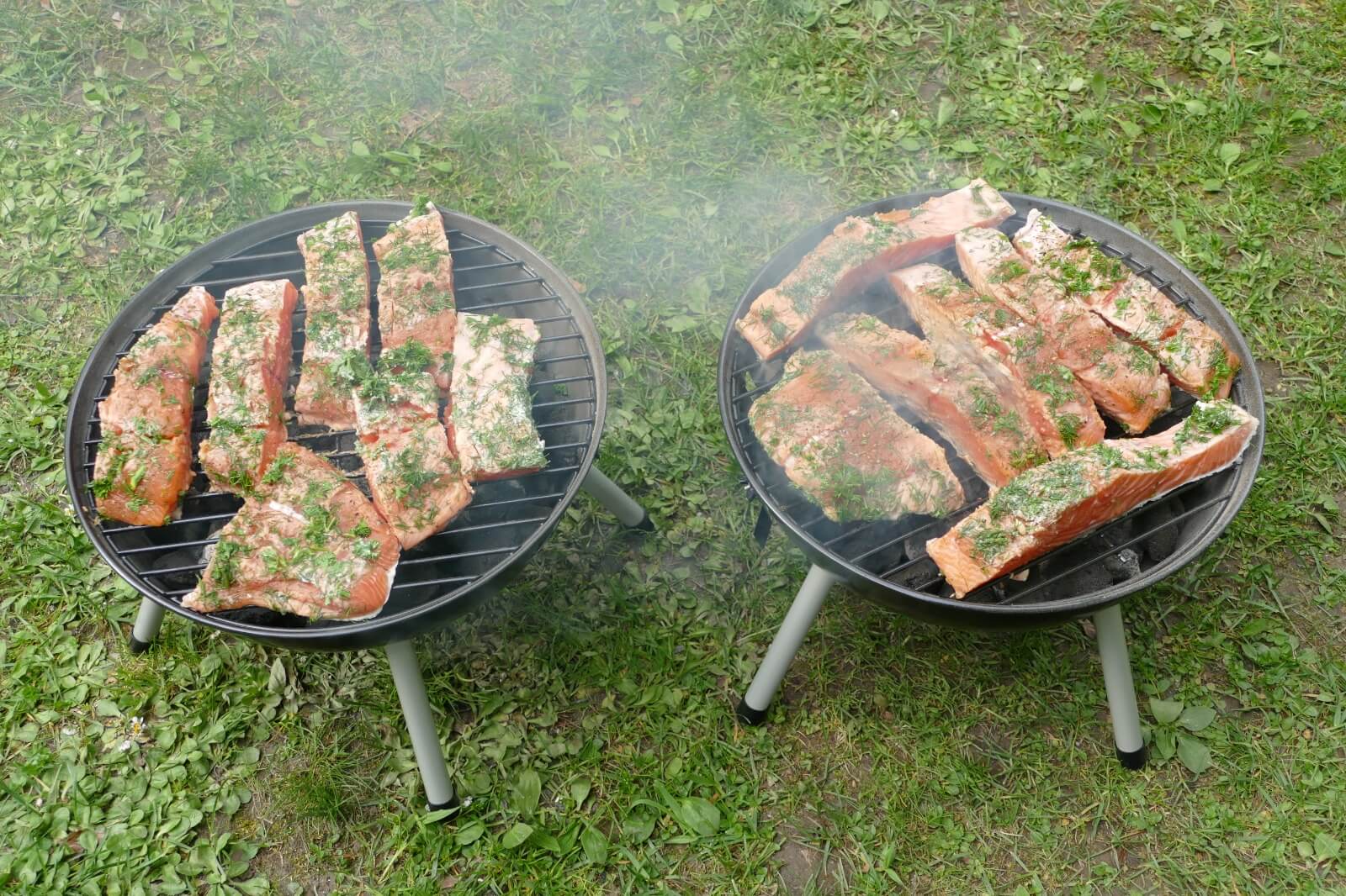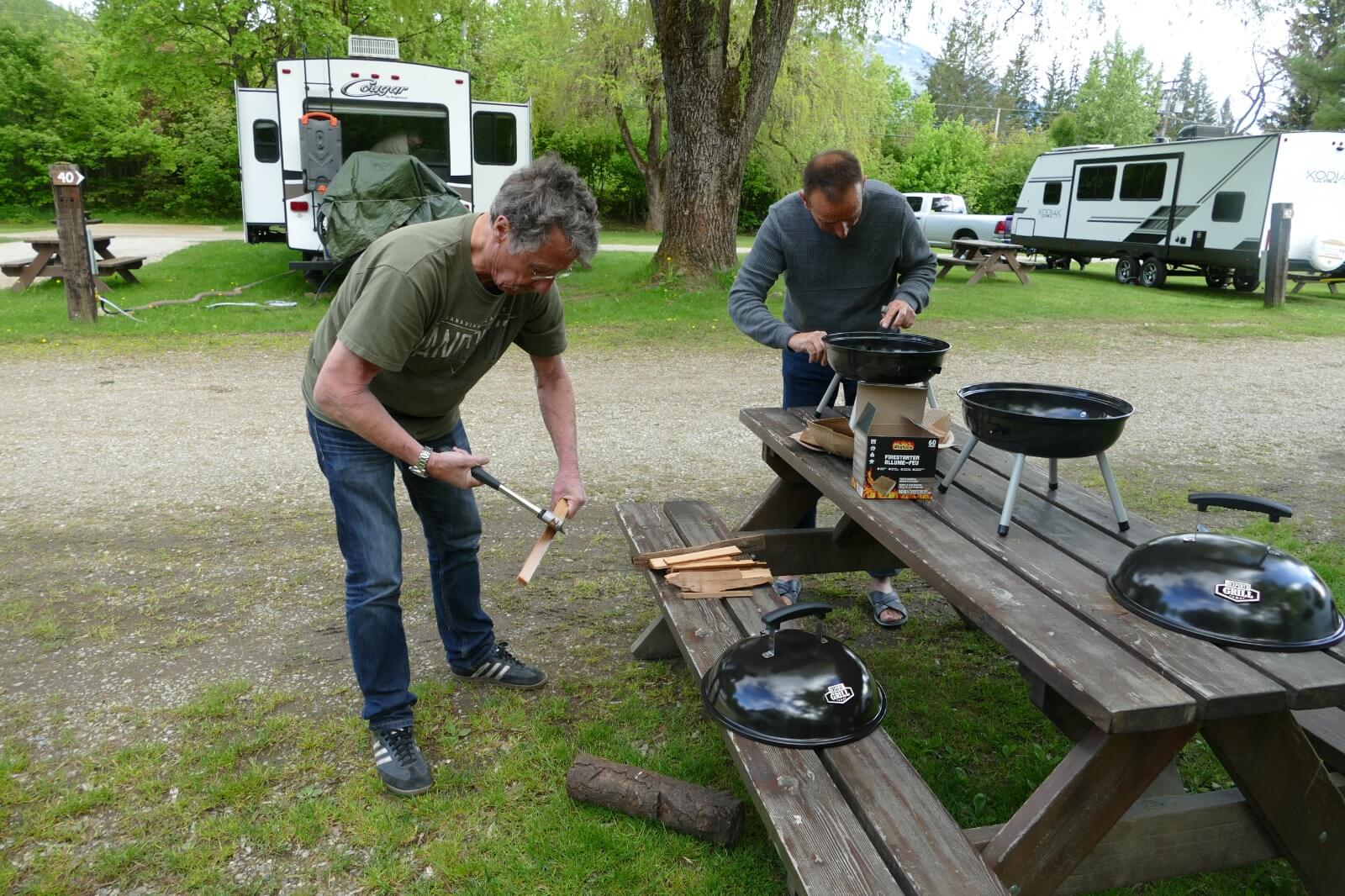 Im Camp angekommen bereiten wir unsere neuen Kohlegrills für eine Campertafel / Lachsabend vor.
