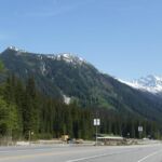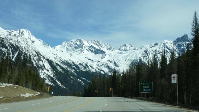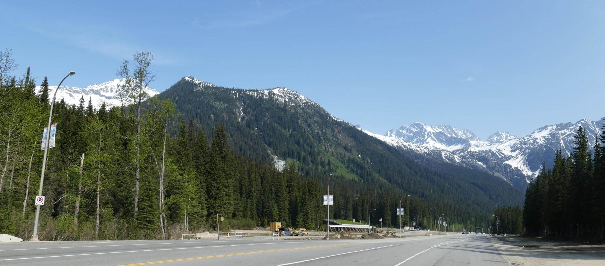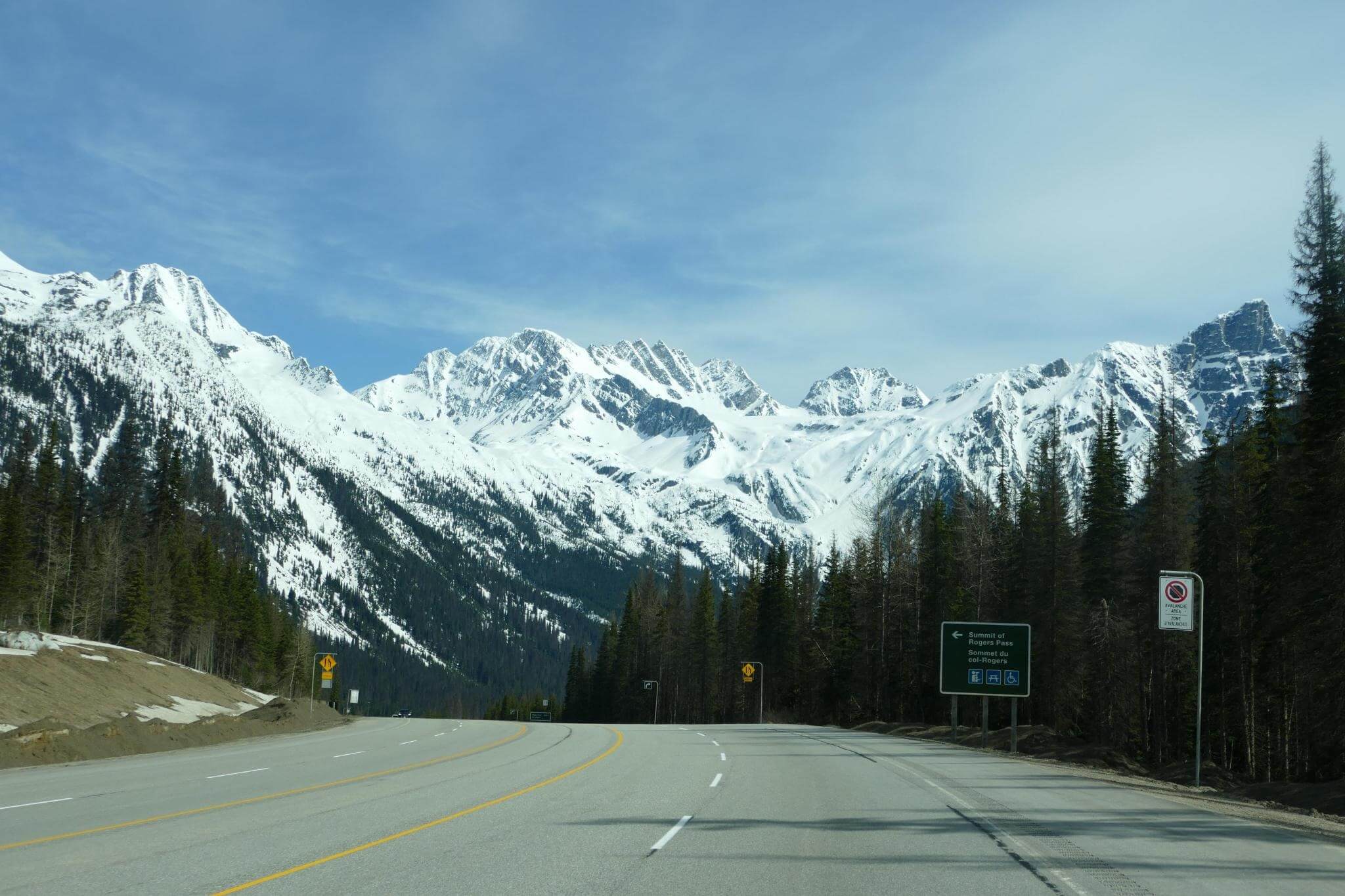 Über eine lange, kaum merkliche Steigung erreichen wir den 1.330m hohen Rogers Pass. Im Winter liegen hier bis zu 9m Schnee.