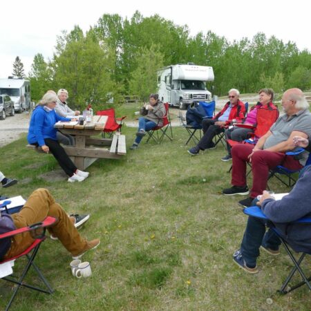 Der Tag vergeht schnell, wir machen uns, vorbei am Calgary-Tower, zurück zu unserem Camp. Essen braucht niemand mehr, einen Absacker nach dem guten Essen kommt bei unserer Fahrerbesprechung aber gut.
