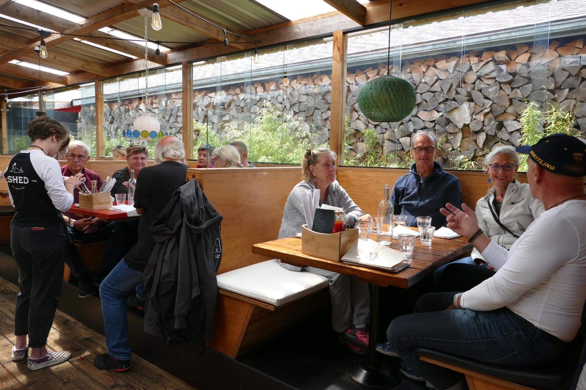 Nachdem wir den Tonquin Trial durchwandert haben, nehmen wir eine Stärkung in einem Restaurant „Shed“ = Baracke. Die aus einfachem Holz zusammengebaute Hütte macht ihrem Namen alle Ehre, aber das Essen und die Erfrischungen einfach und gut.