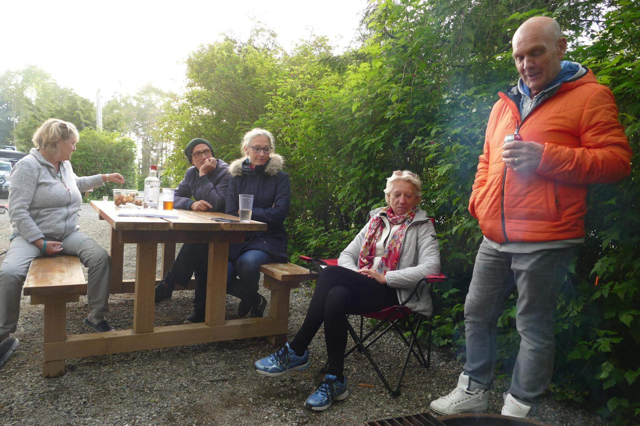 Am Abend unsere Fahrerbesprechung beim Lagerfeuer mit dem ein oder anderen Getränk.