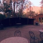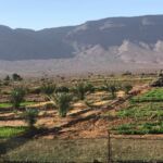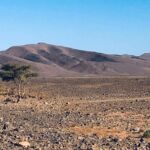 Wir haben nur eine kurze Strecke heute. Sie geht gefühlt immer geradeaus. Wir fahren durch ein weites Tal in einer Höhe zwischen 600m und 1100m, links und rechts die Berge. Zunächst kann man noch Landwirtschaft erkennen, es werden im Frühjahr große Melonen angebaut, hier und da kleine Weizenfelder. Je höher wir kommen, um so steiniger wird die Wüstenlandschaft, zeitweise wachsen noch nicht einmal mehr Stachelbäume. Es ist auch Nomadengebiet. Früh kommen wir in Zagora an, einige fahren in die Stadt um einzukaufen oder Essen zu gehen. Das Camp gleicht einer Karawanserei, wer noch nicht gegessen hat kann für den Abend wieder Tajine bestellen. Nach der Fahrerbesprechung essen vor einem Beduinenzelt in schöner Kulisse oder am WoMo zusammen mit den Nachbarn.