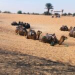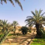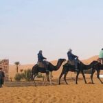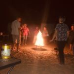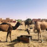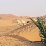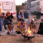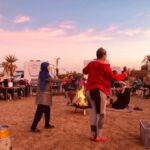 Hin und wieder braucht man auch Ruhetage, ohne zu fahren, um die gesammelten Eindrücke zu verarbeiten. Wir verbringen 3 Nächte in Merzouga, in der Hamada (Sandwüste), nahe der algerischen Grenze im Camp Ksar Merzouga. Es handelt sich um ein Hotel mit Pool und Restaurant und bietet auch mehrere Stellplätze mit Blick auf die Sanddünen an. Damit wir in den Ruhetagen nicht unterbeschäftigt sind werden gibt es eine Anzahl Events, die fakultativ unternommen werden können. Dazu gehören Wanderungen mit den Dromedaren zu Sonnenaufgang oder Untergang. Man kann Jeeps oder Buggy‘s mieten und durch die Sanddünen, brezzeln‘, was eifrig unternommen wird. Ein Highlight ist sicher eine Tour tiefer in die Wüste hinein, dort zu wandern und in einem Beduinenzelt zu übernachten. Am ersten Tag machen fast alle einen Spaziergang mit Zaid, der uns durch eine Oase führt und uns erklärt, wie die hiesigen Bewohner dem kargen Land Obst und Gemüse entnehmen können. Digitalisierung heißt hier, zu festgelegten Zeiten mit der ..Hacke das spärliche Rinnsal Wasser so umzuleiten, dass alle Anwohner Ihre kleinen Beete gerecht bewässern können. Im Anschluss besuchen wir ein Teppich-Lager, Wir bekommen die Herstellung und unterschiedliche Berber-Arten erklärt und es werden Schönsten vor uns ausgebreitet. Ohne Kaufzwang geht doch der ein oder andere Bettvorleger über die Theke. Der 2. Ruhetag endet am Lagerfeuer, wir sitzen alle um eine Feuerschale herum, später wird getanzt. Es war ein schöner Abend unterm Sternenhimmel.