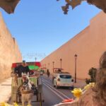 Pünktlich holt uns der Bus ab für die einstündige Fahrt in die kleinste der vier Königsstädte. Wir haben die Wüste seit vorgestern verlassen und sehen links und rechts der Autobahn größere landwirtschaftliche Flächen. Gepflügt wird hier manchmal noch mit Pferd oder Esel. Zuerst geht zum Königspalast. Danach geht es mit Pferdekutschen und teils temperamentvollen Pferden entlang der Stadtmauer in eine der wenigen Moscheen Marokkos, die von ,Ungläubigen‘ betreten werden kann. Unser Guide führt uns von dort in die Medina (Altstadt) und erzählt uns viel über das Leben und Arbeiten sowie die sozialen Strukturen. Gut dass wir ihn haben, wir würden uns alleine nicht in den engen Gassen zurechtzufinden und noch weniger das alte unscheinbare Haus betreten, dessen Inneres sich wieder als orientalischer Palast entpuppt: unser heutiges Restaurant. Nach einem üppigen, wohlschmeckenden Menü gehts zum Bus, der uns kurz zurück zum Marktplatz fährt, und wir auf eigene Faust den Souk der Medina erkunden können. Nach einigen Einkäufen oder einem Kaffee auf der Dachterrasse eines Cafés gehts wieder zurück zum Camp, noch eine Fahrerbesprechung für unseren vorletzten Reisetag und dann genießen alle noch den restlichen Abend in Ruhe oder im Plausch mit Mitreisenden.