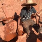 Weiter geht’s nach Süden. Unsere heutige Route führt uns immer weiter durchs westliche Marokko entlang des tosenden Atlantiks gen Süden. Schon kurz hinter Oualidia müssen wir einen ersten Stopp einlegen. Eine herrliche Bucht, Felsen und mächtige Atlantikwellen zwingen uns dazu. Noch ist es etwas diesig aber es klärt sich schnell auf. Wir machen unsere Bilder und genießen das Land und die Anblicke. Überhaupt hören wir heute vom Einen oder Anderen “ jetzt bekommen wir das “ Marokko Feeling“. Wir fahren weiter. Die nächste Pause machen wir in einer Kleinstadt in Safi. Es ist Zeit für einen Kaffee, bzw. Tee, der hier „Chai“ heißt. Ein weiterer Stopp wird nötig, als wir durch ein Dorf fahren, in dem gerade Sonntags – Markt ist. Wir schauen zu, wie sich Oliven aus einem großen Haufen erst zu Brei, dann schließlich zu Öl verarbeiten lassen. Natürlich probieren und kaufen wir das frisch gepresste Olivenöl. Wir sind komplett beeindruckt und fühlen uns wohl in dieser Welt. Wir setzen uns und bestellen etwas zu essen – natürlich vom Grill. Wir erreichen am frühen Nachmittag den Campingplatz. Am Abend sitzen wir noch beisammen, und einige sind noch zum „Grill“ nebenan gegangen….