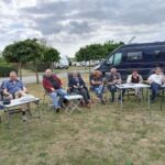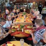 Alle angemeldeten Teilnehmer sind pünktlich eingetroffen, und wir können sie im Namen KUGAS mit einem kleinen Umtrunk begrüßen, in die Navis einweisen, den ersten Fahrtag morgen besprechen und überhaupt mit der Reiseroute vertraut machen. Wir haben viele, noch unbedarfte neue Kunden dabei. Nachdem das zu aller Zufriedenheit geklappt hat, gehen wir nun zum Begrüßungsessen in das urige Restaurant am Platz.