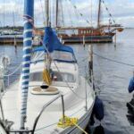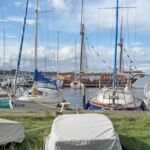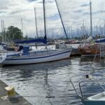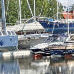 Unser Platz in Stettin liegt direkt an der Mündung der Oder ins Stettiner Haff. Vor unserem Blick erstreckt sich ein großer Bootshafen mit teilweise imponierenden Yachten.