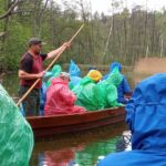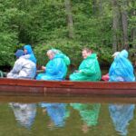 Oh je, wir wachen auf und hören den Regen auf das Dach des Womos prasseln! Bewaffnet mit Schirm und Regenjacken steigen wir um 9.30 in den Bus ein und werden von unserer Reiseführerin Irene, die sich „Mariellchen“ nennt fröhlich begrüßt. Seit Jahren begleitet diese lustige Frau KUGA-Reisende und erzählt mit kaum begrenzter „Schaberei“ in deutscher Sprache mit ostpreußischem Einschlag von ihrer schönen Heimat Masuren, dem schönsten Land der Welt. Wir machen einen Ausflug in die Johannisburger Heide, einem Urwald von hinreißender Schönheit, die „Grüne Lunge“ Polens. Leider kann man dieses herrliche Fleckchen Erde nicht im Bild festhalten, denn durch die verregneten Fensterscheiben des Busses bringt das nichts. Besser sehen kann man es sowieso, wenn man Masuren besucht! Und die Menschen hier freuen sich über Gäste, die ihr Budget ein wenig aufbessern können. Wegen der Unannehmlichkeit des heutigen Regentages steigen wir nur an wenigen Stellen aus, aber ein bekanntes Försterhaus, das Geburtshaus des bekannten ostpreußischen Schriftstellers Ernst Wichert (1887 – 1950) besichtigen wir. Der Dichter überlebte seinerzeit das Konzentrationslager der Nazis, musste aber danach seine Heimat verlassen. Er beschrieb in seinen Werken innbrünstig diese wunderschöne, ruhige und friedliche Landschaft. Noch heute leben die Menschen hier ohne Stress, mit großer Liebe für ihre Heimat ihr bescheidenes Leben. Ihr Verdienst ist hauptsächlich der Tourismus im Sommer, wo man unter blauem „Himmelchen“, bei dem Gezwitscher der „Vögelchen“ in Ruhe dieses Naturschutzgebiet genießen kann, das aus „Hügelchen mit Wald“ und aus „Tälchen mit Wasser“ besteht. Die ständige Verkleinerungsform der Wörter ist der ostpreußische Einschlag, den uns unsere Reiseführerin beibringt! So ist der Mann der Lorbass und jedes Frauchen Mariellchen. Und so wurde unser Reiseleiter zu Lorbasschen Lotharchen“. Ein bisschen Einsehen hatte Petrus dann doch, denn bei unserem nächstmöglichen Halt konnten wir im Städtchen Krutyn eine Bootsfahrt durch den Urwald wagen. Das Flüsschen Krutynia bot uns dieses vergnügliche Erlebnis, bei dem wir noch ein gutes Stückchen mehr dieser Natur kennen lernten. Das Wirtshaus am Ufer ist 100 Jahre alt und sieht doch noch passabel aus. Am Ufer konnten wir die „Bauarbeiten“ von Bibern sehen Es gibt sehr viele hier, die sogar in den Gärten ab und an Apfelbäume umsägen. Es hatte aufgehört zu regnen, aber vorsichtshalber hüllten wir uns in die Regencapes, die uns die Bootsführer ausleihen! Und danach gab’s ein schmackhaftes Mittagessen!