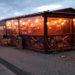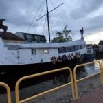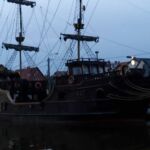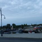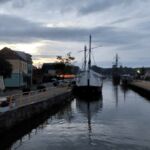 Ruhetag – ausruhen! Aber es gibt auch ein feines Angebot hier in Leba: Ausflug zur Wanderdüne, ein attraktives Erlebnis, das man wahrnehmen sollte! Das wollten wir natürlich auch; ja, wenn der Wettergott mitgespielt hätte! Es war wohl der schlechteste Tag der Reise! Schon während der Nacht hörte man den Regen aufs Wohnmobildach einschlagen, und das ging weiter so den ganzen Tag. Schade, aber nicht zu ändern! Zum Abend hin gab der Regen auf, wir auch, denn es war zu spät für den Dünengang! Aber wir kommen trockenen Fußes in das vorgesehene Restaurant zum Abschiedsessen. Das findet heute, am vorletzten Tag schon statt, denn auf unserem letzten Campingplatz in Stettin lässt sich kein passendes Restaurant finden. Im schon beginnenden Abendlicht gehen wir durch den interessanten kleinen Hafen zum Lokal. Eine beachtlich große Zahl an Schiffen vieler Art ruhen hier im Wasser.