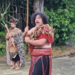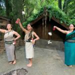 Jutta und Wolfgang nutzen den Tag für eine ausgedehnte Wanderung und Andrea und Franz besuchen die Kiwi-Aufzuchtstation. In der Mittagszeit gönnen sich Viele ein Schäferstündchen. Anschließend noch ein Bad in den heißen Pools am Campingplatz. Nach der kurzen Fahrerbesprechung wartet der Bus schon an der Rezeption auf uns. Das Ziel: das Tamaki Maori Dorf! Bereits im Bus wird es geheimnisvoll und wir werden in Bräuche eingeweiht und erfahren über die Regeln des Zusammentreffens mit dem Māori Stamm. Wir alle sind sehr respektvoll.