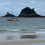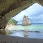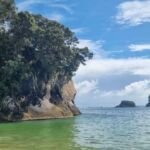 Gestern Traumwetter, heute Vormittag auch noch gut, aber ab Mittag lässt uns das Wetter im Stich. Viele starten bei gutem Wetter die Wanderung zur Cathedral Cove, eine von Wind und Wasser ausgespülter Bogen, sehr groß und beeindruckend. Einige schaffen es auch noch trockenen Fußes zurückzukehren, leider wurden einige sehr nass.