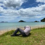 Weiter über schöne Panorama Straße erreichen wir am Nachmittag den Campingplatz am 90-Mile-Beach. Wir platzieren uns nah am Gebäude mit Restaurant. Am Abend präsentiert die Maori-Familie ein maorisches Menü mit Lamm- und Rindfleisch und verschiedenem Gemüse und Salaten. Ein leckeres Puddingcreme Dessert rundet unser Abendessen ab.