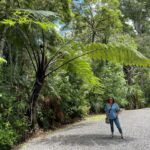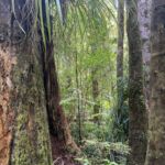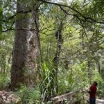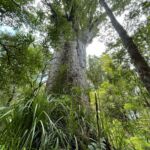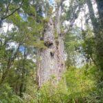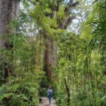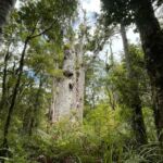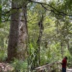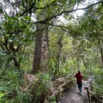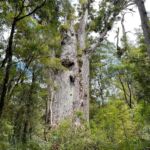 Der Hauptstamm ist etwa 18 m hoch, der gesamte Baum über 51 m, der Stamm hat einen Umfang von fast 14 m und ein Holzvolumen von errechneten 244,5 Kubikmetern. Soweit die Fakten. Nun zur Maori Geschichte: Tame Mahuta hat eine ganz existentielle Bedeutung für das Leben der Maori. Nach dem Glauben oder der Sage waren einst der Vater Himmel (Ranginui) und die Mutter Erde (Papatuanuku) miteinander vereint. Damit aber das Leben (der Maori) entstehen konnte, mussten beide voneinander getrennt werden. Unser kräftiger Baum Tane Mahuta allein hatte die Kraft dazu und schob den Vater Himmel nach oben. Nun entstand Lebensraum zwischen Himmel und Erde. Da beide einander jedoch liebten weint der Vater Ranginui häufig, es regnet! Und da Mutter Erde Papatuanuku bereits ein Kind erwartete, welches sich heftig in ihrem Bauch bewegte, entstanden die vielen Erdbeben, die die beiden Inseln heimgesucht hatten. So die Geschichte! Für uns war’s beeindruckend und wurde uns direkt an dem riesigen Baum von einer Reiseführerin erzählt! Nun sind wir erst recht begeistert von diesem Wald und spazieren auch den nächsten Wanderweg hinein in den gigantischen Wald. Was uns erwartet sind Unzählige dieser Riesenbäume und ganz tief drinnen noch einmal einer, der noch mächtiger ist als Tane Mahuta.