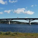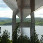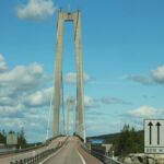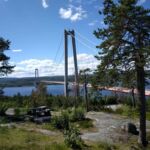 Dann beginnt Höga Kusten („Hohe Küste“), ein interessantes Küstengebiet (UNESCO), entstanden durch besonders hohe Bodenhebung nach Abschmelzen der Eiszeit-Eismassen. Jetzt kommen wir zur Högakustenbron, eine Hängebrücke fast ebenso lang wie die Golden Gate Bridge und zweithöchstes Bauwerk Schwedens.