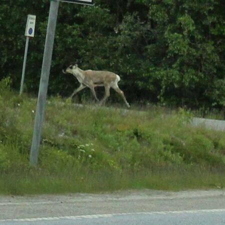 Achtung: Elche und Rentiere können jederzeit die Fahrbahn kreuzen! Diese plötzliche Erfahrung machen Hans und Petra, die voraussichtlich nächstes Jahr die Reise leiten werden. Das ist nochmal gut gegangen! Nur gut, dass uns unser Reiseleiter Franz schon frühzeitig zur Vorsicht ermahnt hat! Wir kommen schließlich alle gut am Campingplatz in Umea an.