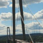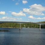 Dann beginnt Höga Kusten („Hohe Küste“), ein interessantes Küstengebiet (UNESCO), entstanden durch besonders hohe Bodenhebung nach Abschmelzen der Eiszeit-Eismassen. Jetzt kommen wir zur Högakustenbron, eine Hängebrücke fast ebenso lang wie die Golden Gate Bridge und zweithöchstes Bauwerk Schwedens.