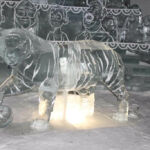 Heute unternehmen wir wieder einen Busausflug ins nahegelegene Kemi. Dort besichtigen wir als erstes Snow Castle 365. Dies ist eine ganzjährige Ausstellung von Eisskulpturen, die von örtlichen Künstlern jedes Jahr neu gefertigt werden. Heuer widmet sich die Ausstellung dem Thema „Zirkus“. Wir betreten durch eine Schleuse den riesigen Raum und erleben erstmal einen Temperatursturz auf – 5 Grad. Was wir dann sehen, ist einfach genial. Aus riesigen Eisblöcken wurde eine Bühne errichtet, vor der Eisskulpturen aufgestellt sind, von denen man den Eindruck hat, sie seien aus Glas. Vom Zirkusdirektor bis zum Tiger und toll illuminiert. Klasse!