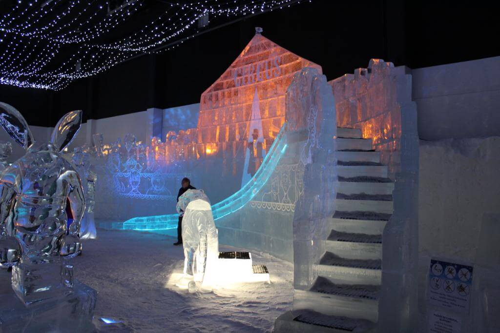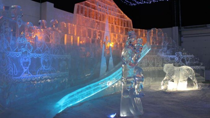 Von Januar bis April wird hier daneben ein Hotel nur aus Eis errichtet, wo man in speziellen Schlafsäcken auch übernachten kann. Ein gigantisches Gebäude, was aber wegen Corona zuletzt im Jahr 2020 aufgebaut wurde.