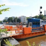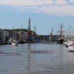 Danach fahren wir mit der Stadtfähre über den Fluss Aura und haben dadurch schöne Perspektiven auf die Ufergebäude.