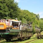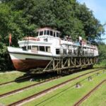 Zwei Abstecher werden angeboten. In der Nähe von Buczyniec/Buchwald trauen wir unseren Augen nicht: ein Schiff fährt über Land! Wir sind am Oberländischen Kanal. Dort gibt es insgesamt 5 Schiffshebewerke. Die Schiffe werden auf fahrbare Untersätze gesetzt und mit Hilfe der Wasserkraft auf Schienen auf die nächsthöhere Ebene gezogen. Eine geniale Ingenieurskunst!