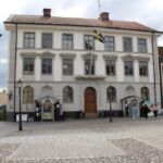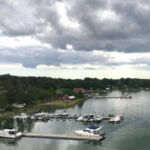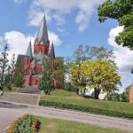 Leider müssen wir den schönen Campingplatz heute wieder verlassen. Unser Etappenziel ist die Hauptstadt Stockholm. Es ist eine lange Etappe mit einigen Besichtigungsmöglichkeiten. Daher sind fast alle schon vor 9 Uhr bei strahlendem Sonnenschein gestartet. Als erstes fahren wir durch Västervik mit seinen schönen Holzhäusern und Kirchen.