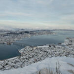 Mit der Gondel geht’s hoch, wir werden mit einem super Panorama von Tromso belohnt.