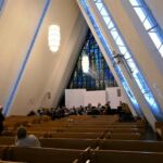 Die Eismeerkathedrale, eigentlich Tromsdalen kirke, ist eine der Imposantesten Gebäude von Tromso. Sie soll die Dunkelheit, das Eis und das Polarlicht symbolisieren.