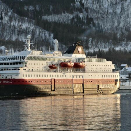 Am Nachmittag läuft Kong Harald, das Hurtigrutenschiff planmässig im Hafen von Trondheim ein. Eine tolle Erfahrung!