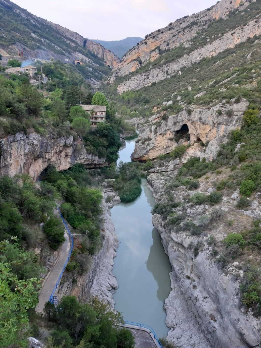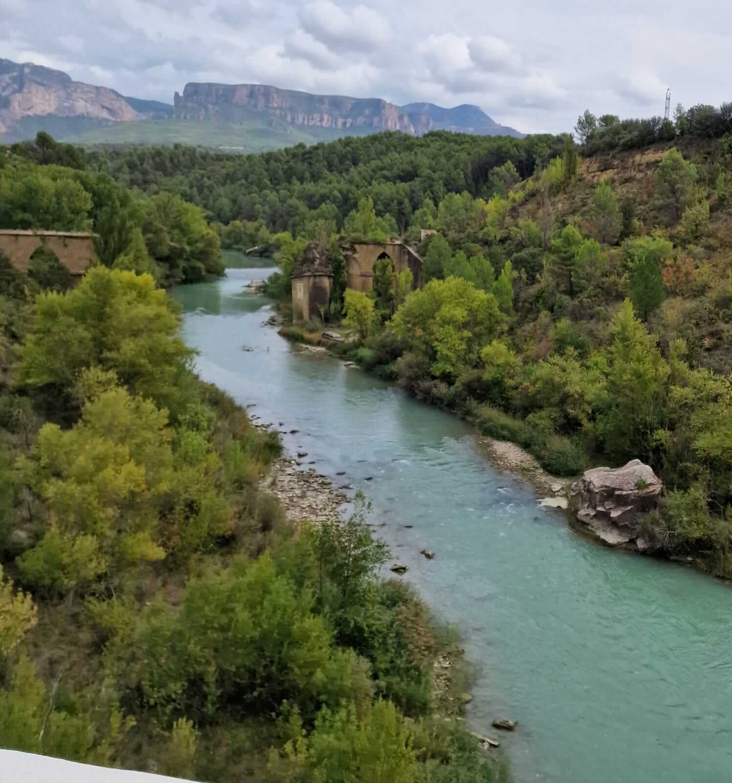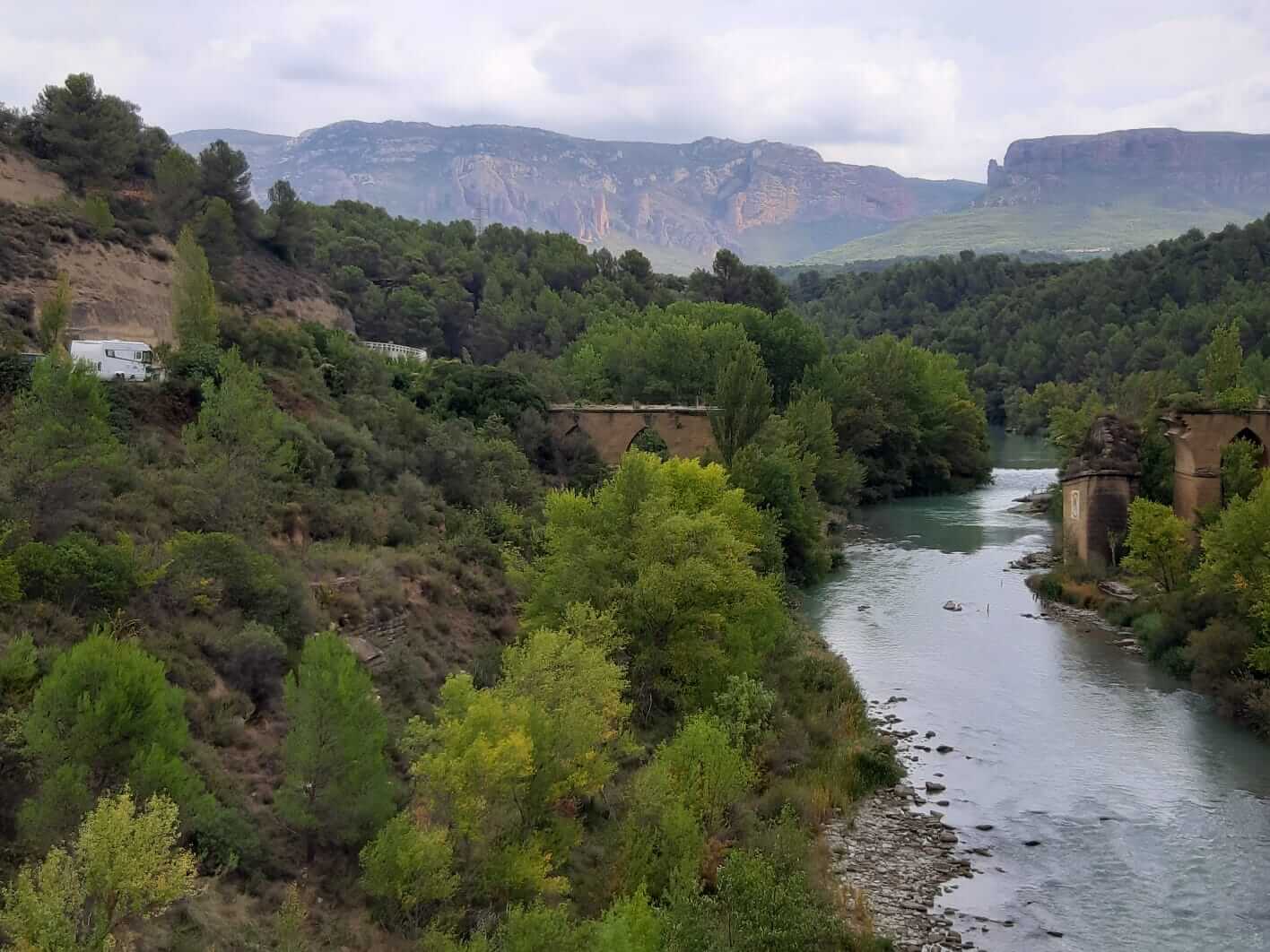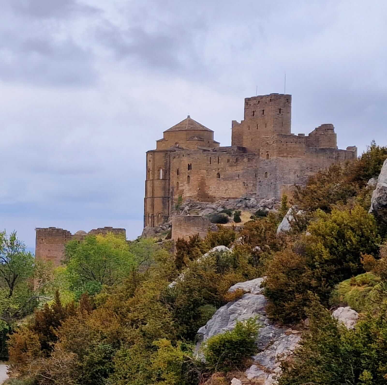 Vom Lago de Barasona begeben wir uns auf den Weg nach Jaca und überqueren auf dieser Strecke den Nullmeridian. Wir wechseln also von der Osthälfte zur Westhälfte der Erde. Vorbei an Huesca geht’s zum Castillo Loarre, ein Muss, wenn man sich in dieser Region befindet. Durch ein schluchtenartiges Tal erreichen wir die Felsen Los Mallos. Weiter geht es zum ehemaligen Grenzort Agüero der unter einer beeindruckenden Felsformation gebaut wurde. Von hier startete die Unabhängigkeitsbewegung der Spanier gegen die Araber, die sog. Reconquista. Bald erreichen wir die Klöster San Juan de la Pena. Im 17ten Jahrhundert sind die Mönche in das neue Kloster umgezogen. Besonders eindrucksvoll das alte Kloster welches wie unter die Felsen geklebt wirkt. Nach dem Klosterbesuch haben wir einen schönen Blick in`s Tal, in dem unser heutiges Camp in Jaca.