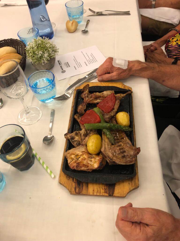 Der erste Tag, noch die Eindrücke der Anreise im Sinn und gleich zur ersten Besprechung – Austeilung der Navis, der Audio Guides, und eine Vorstellungsrunde den Eindruck hinterlässt. Der erste Kontakt ließ nicht erahnen wie viele Jahre manche Teilnehmer an Camping – Erfahrung haben, wie weit sie die Welt schon bereist haben, oder im eigenen Land Begeisterung gefunden haben. Es werden der 2. Tag besprochen und Fragen gestellt. Danach gibt es einen kurzen Fußmarsch zum Restaurant am Strand von Roses zu einem wundervollen Begrüßungsessen. Man lernt sich näher kennen und genießt das Menü. Die letzten verlassen das Lokal erst als wir das Gefühl haben, dass das Restaurant- Personal nach Hause möchte.