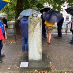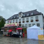 Es war bereits zu erwarten – das Wetter sollte sich nicht von seiner sonnigen Seite zeigen. Obwohl wir es nach den Prognosen bereits erwartet hatten, war es dann doch ziemlich feucht und wir beginnen in einem kleinen Wolkenloch schnell mit unserer Begrüßungsrunde. Zügig verteilen wir die Navigationsgeräte und erklären sie. Es folgen die Audio Guides… bevor wir weitere Themen beginnen können, tropft es wieder vom Himmel. Unser lieber Reiseführer erscheint pünktlich mit kurzer Lederhose, als ob wir den schönsten Sonnenschein hätten. Unsere Planwagen Tour wurde leider auch abgesagt: „…bei dem Wetter schicke ich meine Pferde nicht auf die Straße…“ . Aber wir lassen die Köpfe nicht hängen. Als wenn nichts wäre, machen wir uns mit Schirmen auf den Weg und lauschen Dieter bei seinen kurzweiligen Erklärungen.