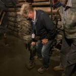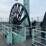 Nach dem Besuch untertage, dürfen wir noch auf den hohen Förderturm, mit dessen Hilfe die Fahrkörbe hinauf und hinunter befördert werden.