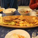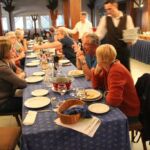 So viel Neues macht hungrig. Und so genießen wir unser Begrüßungsessen mit Kesselgulasch, Schweinebraten, Beilagen und Milchkuchen und ungarischem Wein.