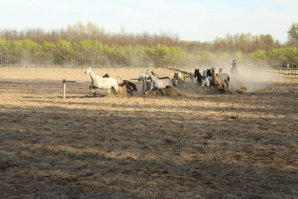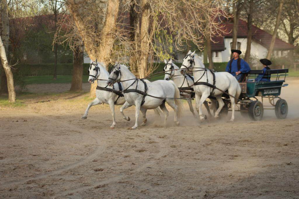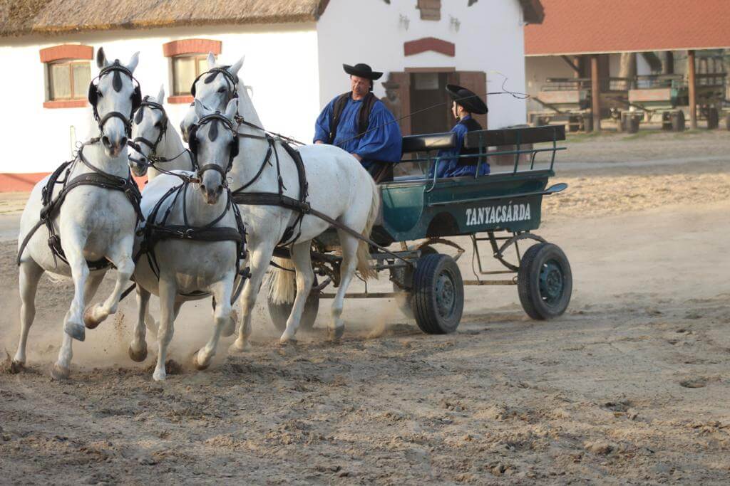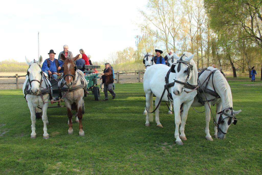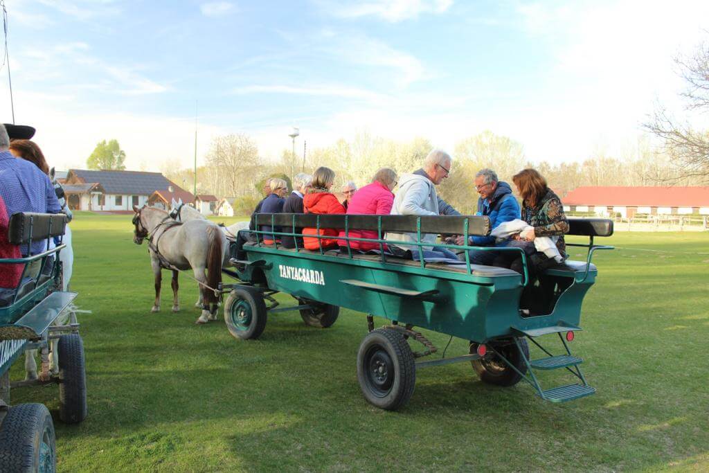 Nach der Begrüßung fährt uns eine Pferdekutsche über das weite Gebiet der Csarda.