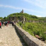 Danach besichtigen wir mit dem Bus eine der reizvollsten Städte Bulgariens: Veliko Tarnovo, vom 12. bis 14. Jhd. Hauptstadt des zweiten Bulgarischen Reiches und damals zweitwichtigste Stadt nach Konstantinopel. Schon die Lage der Altstadt ist etwas Besonderes. Die Häuser schmiegen sich terrassenförmig eng an einen steilen Felshang und sind nur über kleine Gässchen erreichbar. Unten fließt der Fluß Jantra. In den Häusern, deren Baustil aus der Wiedergeburtszeit stammt, befinden sich kleine Läden und Geschäfte und laden zum Bummeln ein. Ansonsten ist Veliko Tarnovo mittlerweile die zweitgrößte Universitätsstadt des Landes.