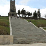 Nun haben wir nach kurzer Fahrt den Scheitelpunkt des Shipka-Passes erreicht. Dort können wir parken und die Rundumsicht genießen. Wer möchte und noch genug Kondition hat, kann zum Freiheitsdenkmal auf dem Gipfel Stoletov (1.326 m) hochsteigen. Der 31m hohe Turm (errichtet 1929) gleicht einer mittelalterlichen bulgarischen Festung und bietet eine tolle Aussicht.