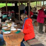 Die Backstube hinter dem Kloster in der wir bisher Brot und köstliches Schmalzgebäck: Mekiza, kauften, ist leider wegen der Renovierung des Backofens noch geschlossen. Wir übernachten am dortigen Campingplatz. Natur pur! Der Betreiber grillt am Nachmittag für uns leckere Steaks, Thüringer Bratwürste, dazu Krautsalat und Kartoffelchips. Mit Wein und einem 5l Fässchen Kulmbacher Bier lassen wir es uns gut gehen.