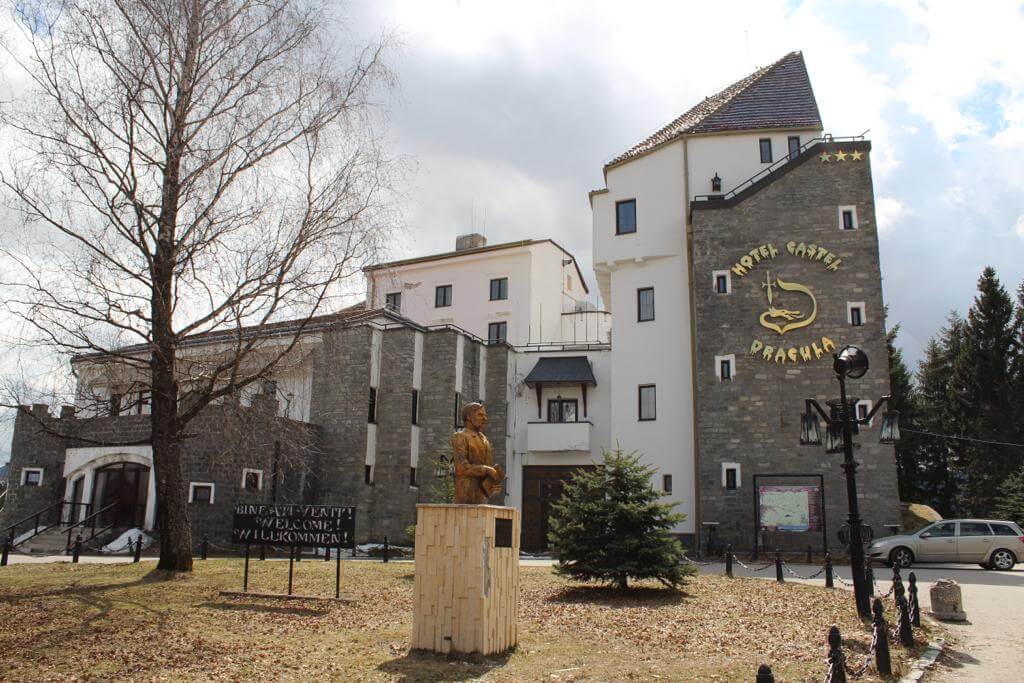 Nach Bistrita beginnen die Ostkarpaten, höchste Erhebung 2.308 m. Wir gelangen in die Region Bukovina und folgen dem Pasul Tihuta (ungarisch: Borgo-Pass) vielen aus dem bekannten Roman „Graf Dracula“ bekannt. Oben am Pass bei ca. 1.200 m angekommen, machen wir eine Pause am Dracula-Hotel. Auf dem Vorplatz ist dem Romanautor Bram Stoker ein Denkmal gewidmet.