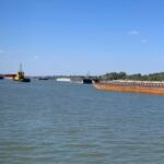 Heute fährt das Schiff bis hoch zum Chiliaarm. Die passieren den Grenzposten und sind in der Mitte des Flusses direkt an den Grenzbojen der Ukraine. Das gegenüber liegendem Ufer ist schon die Ukraine. Weiter hinten sehen wir die Hafenanlagen von Ismail. Irgendwie ein bedrückendes Gefühl.
