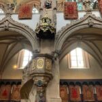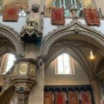 Wir besichtigen das Wahrzeichen der Stadt, die Schwarzen Kirche, so genannt aufgrund eines Stadtbrandes 1689. Förderer dieser Mariakirche war König Matthias Corbinus. Es ist die größte gotische Kirche zwischen Wien und Istanbul und verfügt über fünf Orgeln, eine 6 Tonnen schwere Glocke und 270 wertvolle Teppiche. Es ist die weltweit größte Sammlung kleinformatiger osmanischer Wollteppiche aus Anatolien.