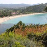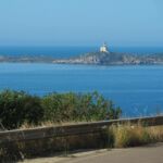 Heute lohnt es sich, nicht allzu spät loszufahren, da wir die schönste Küstenstraße Sardiniens von Villasimius nach Cagliari mit unseren Wohnmobilen genießen wollen. Es bieten sich viele schöne Parkbuchten mit einem weiten Blick auf das in der Morgensonne glänzende tiefblaue Meer. Die Straße schlängelt sich an den abfallenden Bergen entlang durch kleine Ortschaften und führt wieder an schönen Badestränden vorbei. Wer möchte, kann hier direkt vom Weingut Wein einkaufen. Wir haben einen weiten Blick über den Golf von Cagliari.