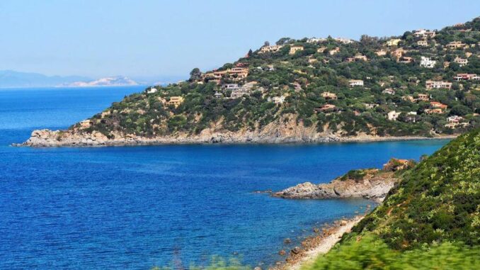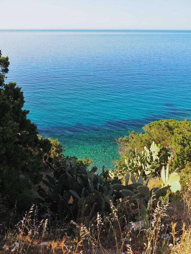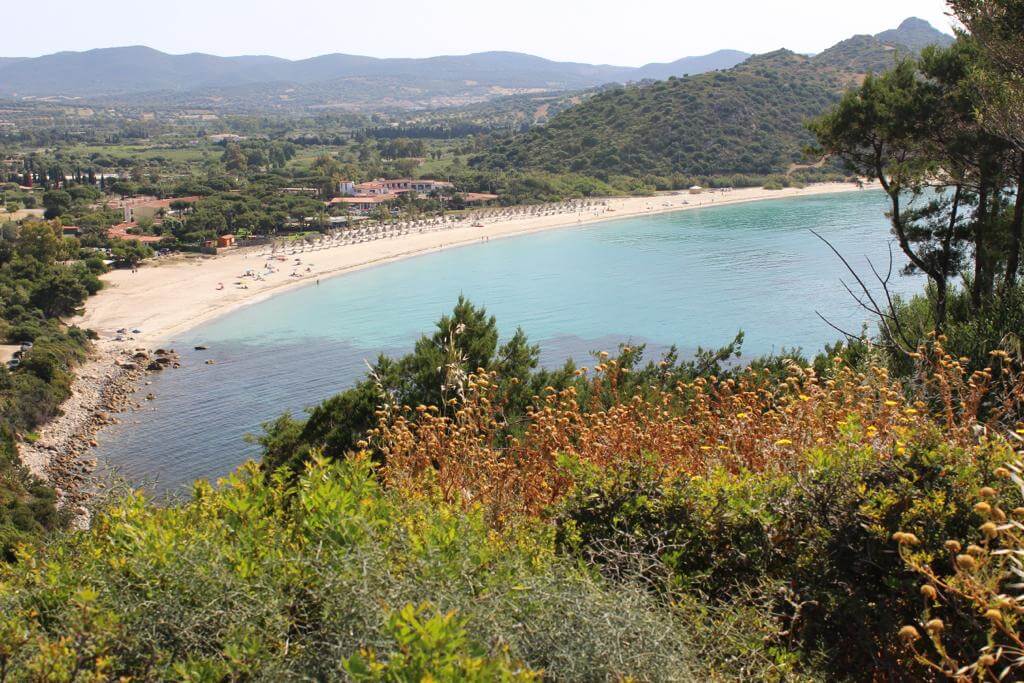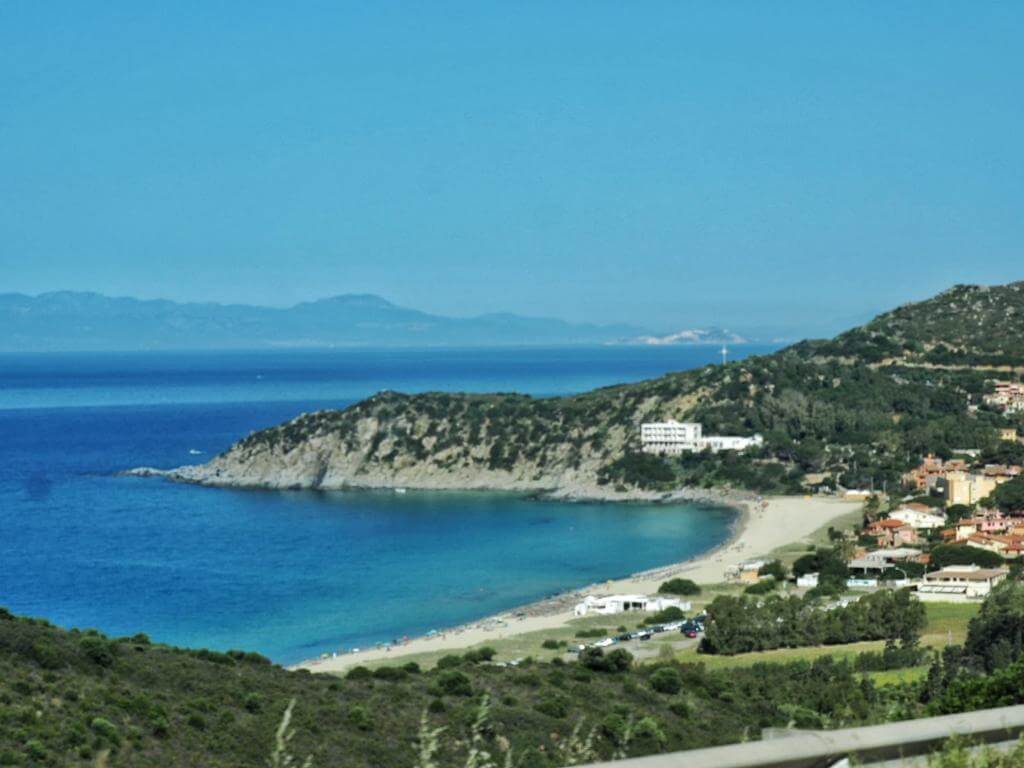 Heute lohnt es sich, nicht allzu spät loszufahren, da wir die schönste Küstenstraße Sardiniens von Villasimius nach Cagliari mit unseren Wohnmobilen genießen wollen. Es bieten sich viele schöne Parkbuchten mit einem weiten Blick auf das in der Morgensonne glänzende tiefblaue Meer. Die Straße schlängelt sich an den abfallenden Bergen entlang durch kleine Ortschaften und führt wieder an schönen Badestränden vorbei. Wer möchte, kann hier direkt vom Weingut Wein einkaufen. Wir haben einen weiten Blick über den Golf von Cagliari.