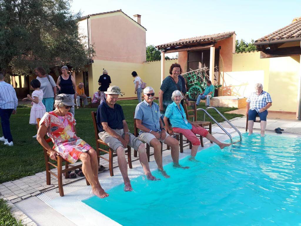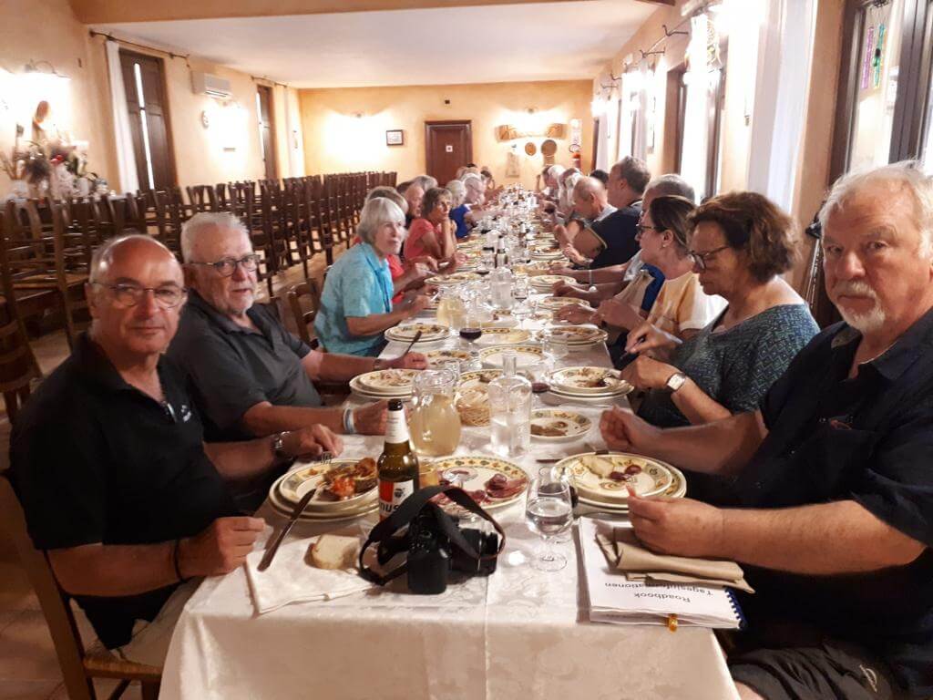 Kurz vor dem Ziel hat Manfred am Wohnmobil einen Plattfuß. Es ist Sonntag und sogar die Carabinieri wissen nicht weiter. Wir können nach mehreren Versuchen das Loch erfolgreich abdichten um den Reifen am nächsten Tag in der nahegelegenen Werkstatt fachgerecht reparieren zu lassen. So erreichen alle am frühen Nachmittag das heutige Etappenziel, einen Agriturismo. Dieser befindet sich auf einem Hügel. Wir genießen den unendlichen weiten Blick in alle Himmelsrichtungen. Wir treffen uns zu einem freudigen Ereignis: unsere liebe Brigitte hat heute Geburtstag! Herzlichen Glückwunsch!