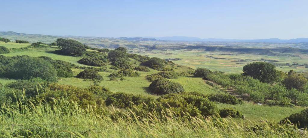Kurz vor Cagliari biegen wir ab in Richtung Norden und erreichen bald die Marmilla. So heißt die sanft hügelige Landschaft, die vom landwirtschaftlichen Ackerbau geprägt ist.