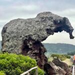 Kurz vor dem Etappenziel kommen wir an einer interessanten Felsformation vorbei, dem Elefantenfelsen. Tatsächlich-schaut aus wie ein Elefant. Interessant, was die Natur in langer Zeit aus dem Tuffgestein erschafft!