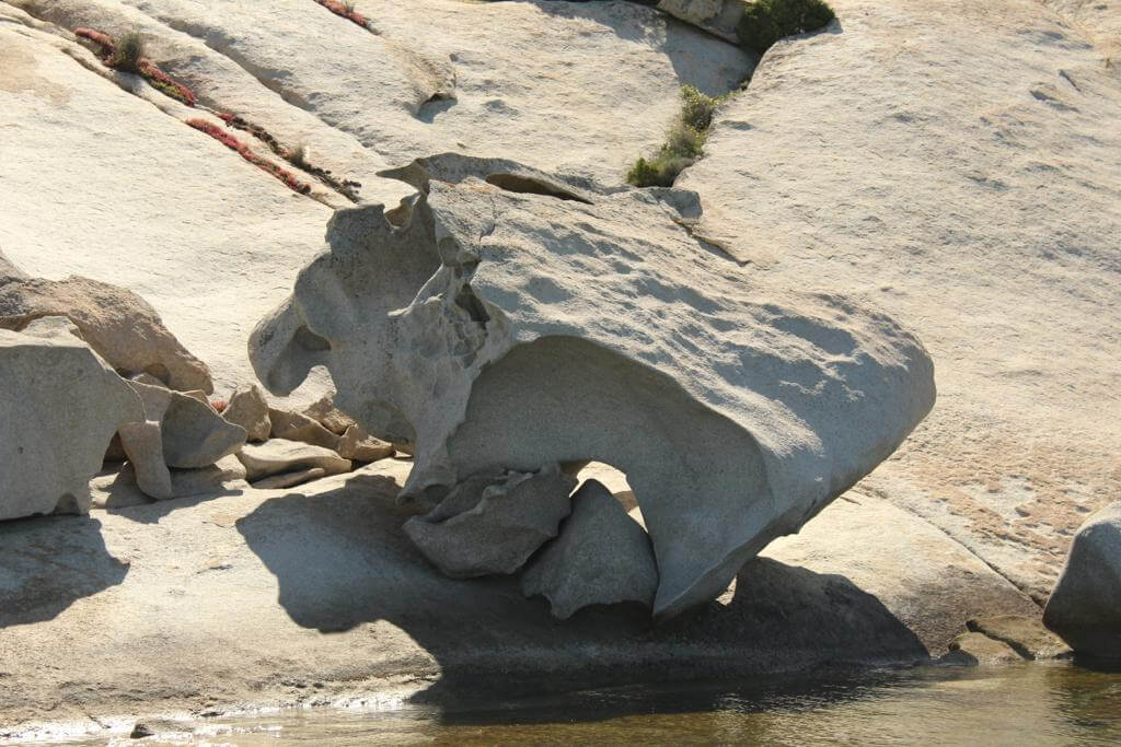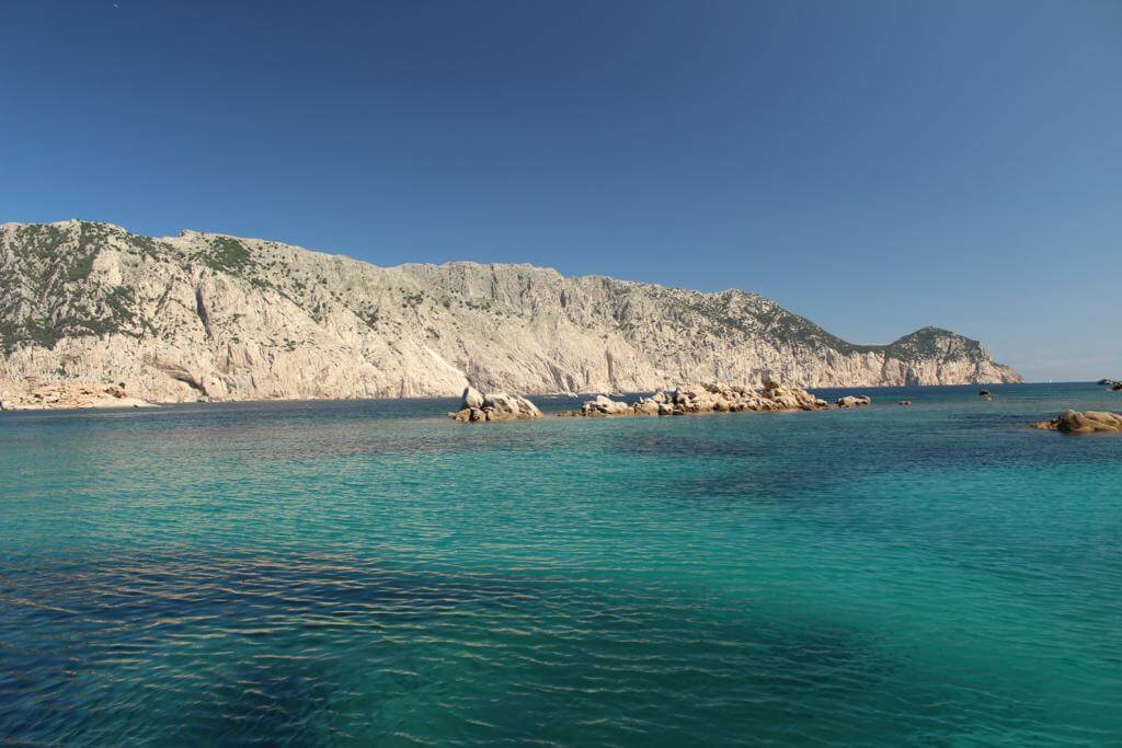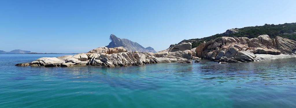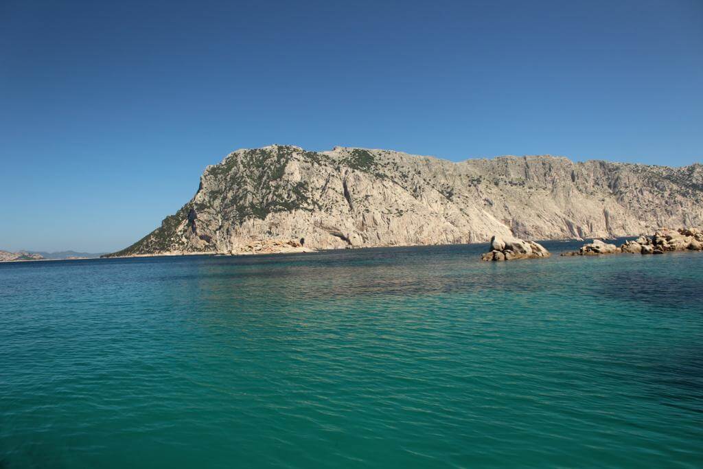 Wir nähern uns den Inseln Molara und Tavolara. Wir schippern ganz langsam nah an den Felswänden des Tavolarafelsens entlang und erkennen die früheren Schmugglerhöhlen und -grotten.