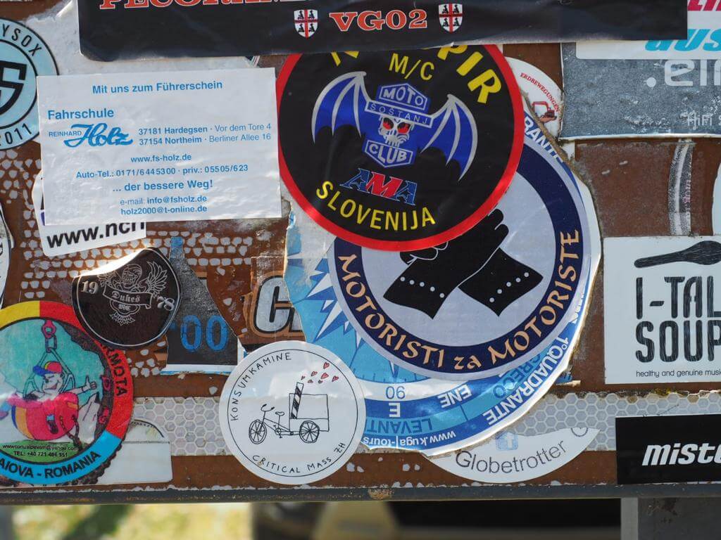 Die heutige Fahrstrecke führt uns erstmal stetig bergab. In Serpentinen, durch den uns bereits bekannten Tunnel und dann weiter Richtung Süden. Auch hier schlängelt sich die Straße mäßig aber stetig den Berg empor. Wir sind im Supramonte. Der Blick auf die umliegenden Gebirge ist beeindruckend. Dazwischen schneiden sich tiefe Schluchten ins Gestein. Schließlich erreichen wir die höchste Erhebung unserer Tour, den Pass: Genna Silana mit einer Höhe von 1.017 m. Auf dem Schild dort ist teilweise noch der KUGA-Aufkleber zu sehen, den wir vor 2 Jahren angebracht hatten.