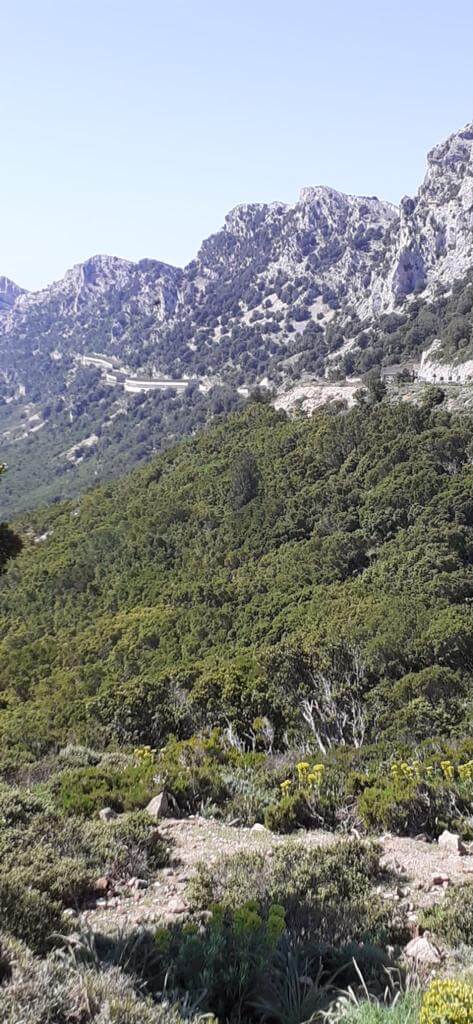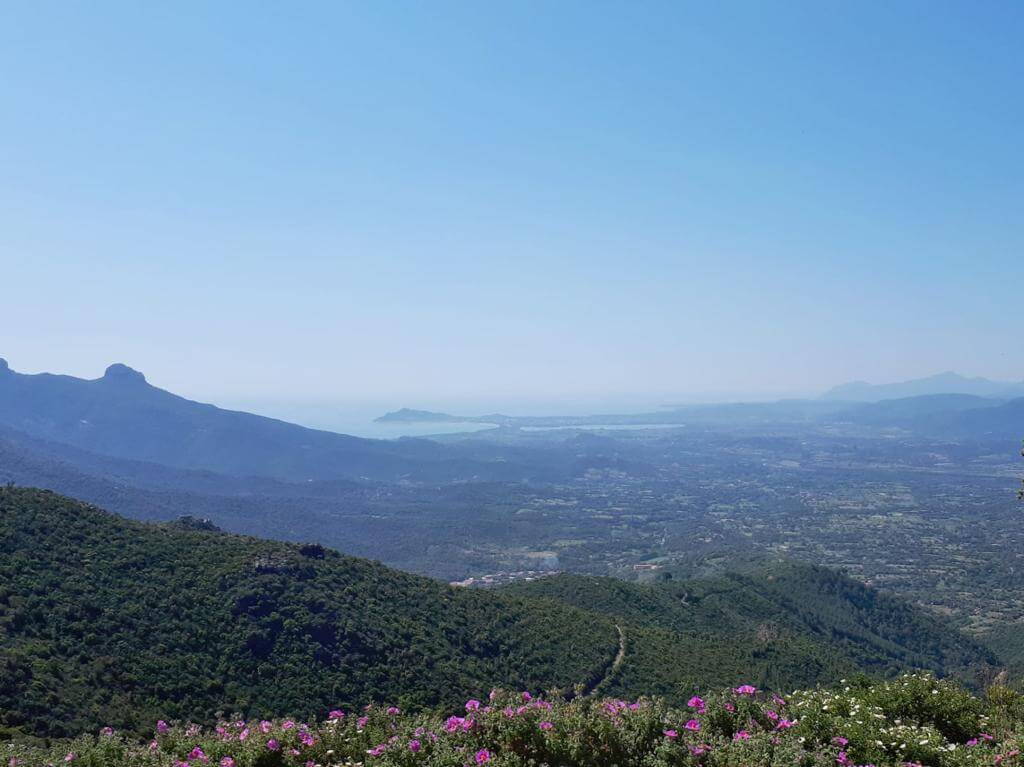 Der ideale Platz für ein zweites Frühstück mit weitem Blick auf die umliegenden Bergketten. Vor uns süd-westlich die höchste Erhebung der Insel – der Mte. Marmora (1.834) im Gennargentugebirge, des größten Bergmassives Sardiniens. Hier ist die Natur noch unberührt: wildlebende Mufflons, Steinadler und Schleiereulen sind hier heimisch.